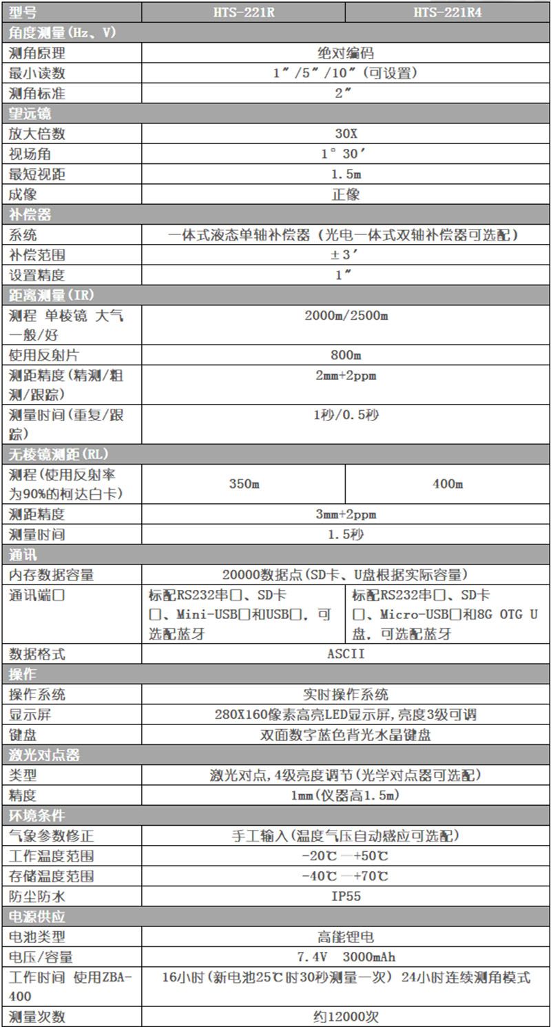 华星HTS-221R\HTS-221R4实用型全站仪采用细束可见激光测距、亮度四级可调LED显示屏,光电一体式双轴补偿系统,集高精度的光学系统、高稳定性的机械结构和高集成的电路设计于一身的精密测距系统,并突破性的采用了STM32架构设计,在保证仪器精度和稳定性的同时,全面提升仪器的整体性能和处理速度。