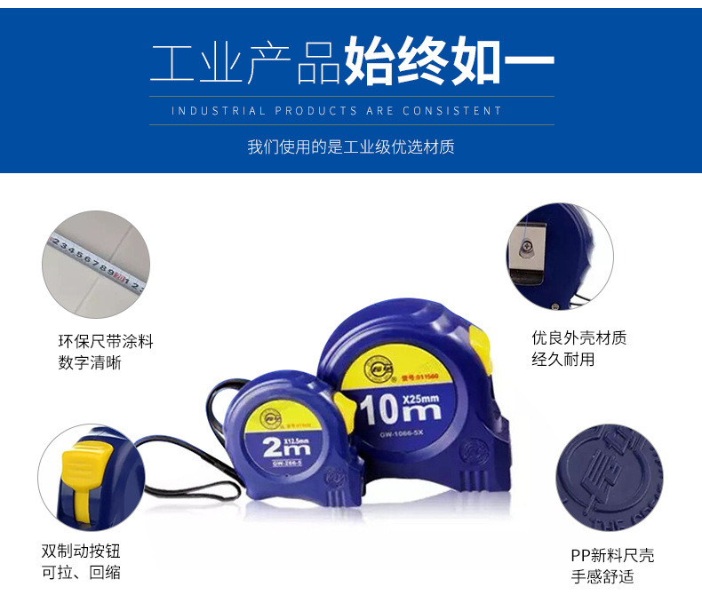 型号:卷尺(2m*12.5mm),卷尺(2m*16mm),卷尺(3m*12.5mm),卷尺(3m*16mm),卷尺(3.5m*12.5mm),卷尺(3.5m*16mm),卷尺(5m*16mm),卷尺(5m*19mm),卷尺(5m*25mm),卷尺(7.5m*25mm),卷尺(10m*25mm)